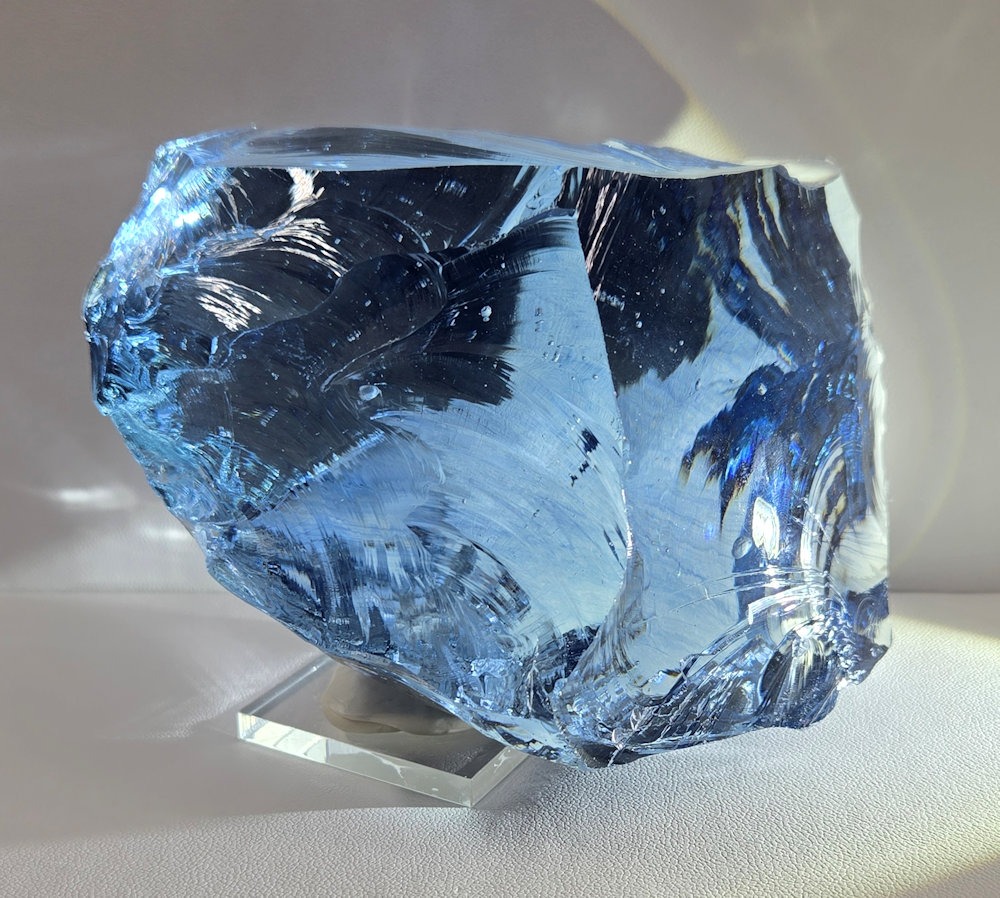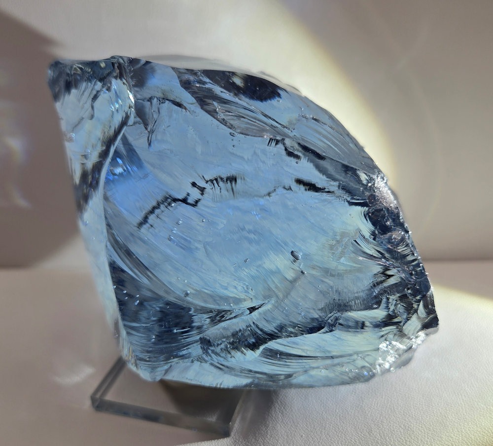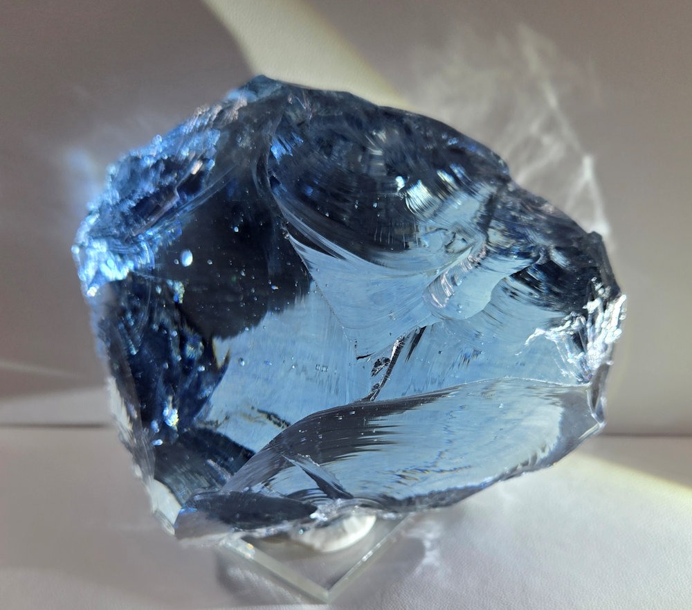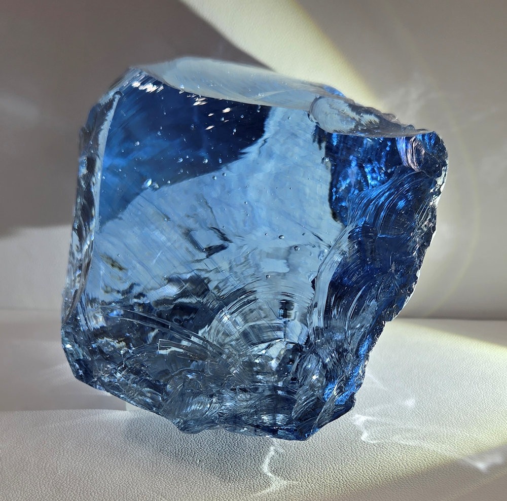 This Andara was discovered just before Lady Nellie’s passing, and carries her spiritual heart energies. The ever shifting color from light blue to periwinkle to a dark blue than back to almost clear is an amazing example of how Nellie shifted her heart energies to accommodate all in her healing work. It is a crystal of transmutation and living in God’s grace, as one is held in light and love.
