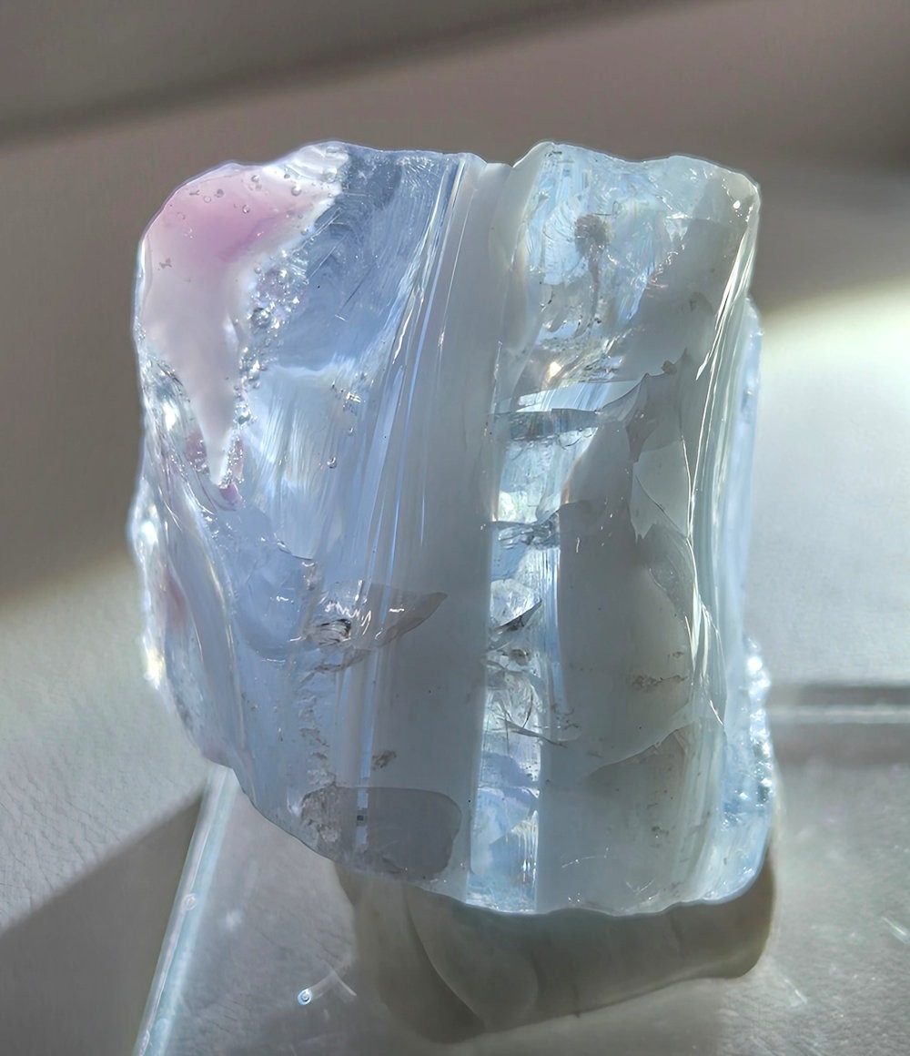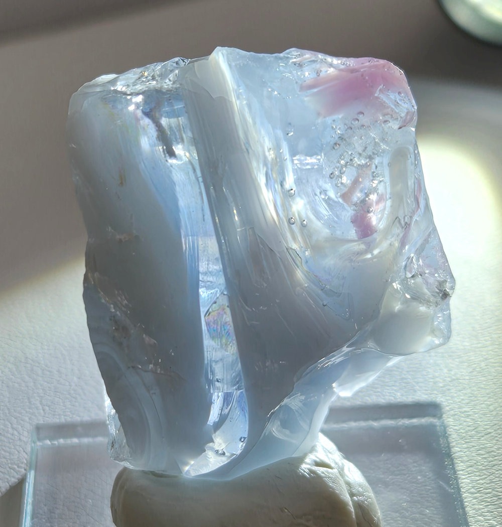 This color of Monatomic Andara crystal has chosen the name Cosmic Ice.